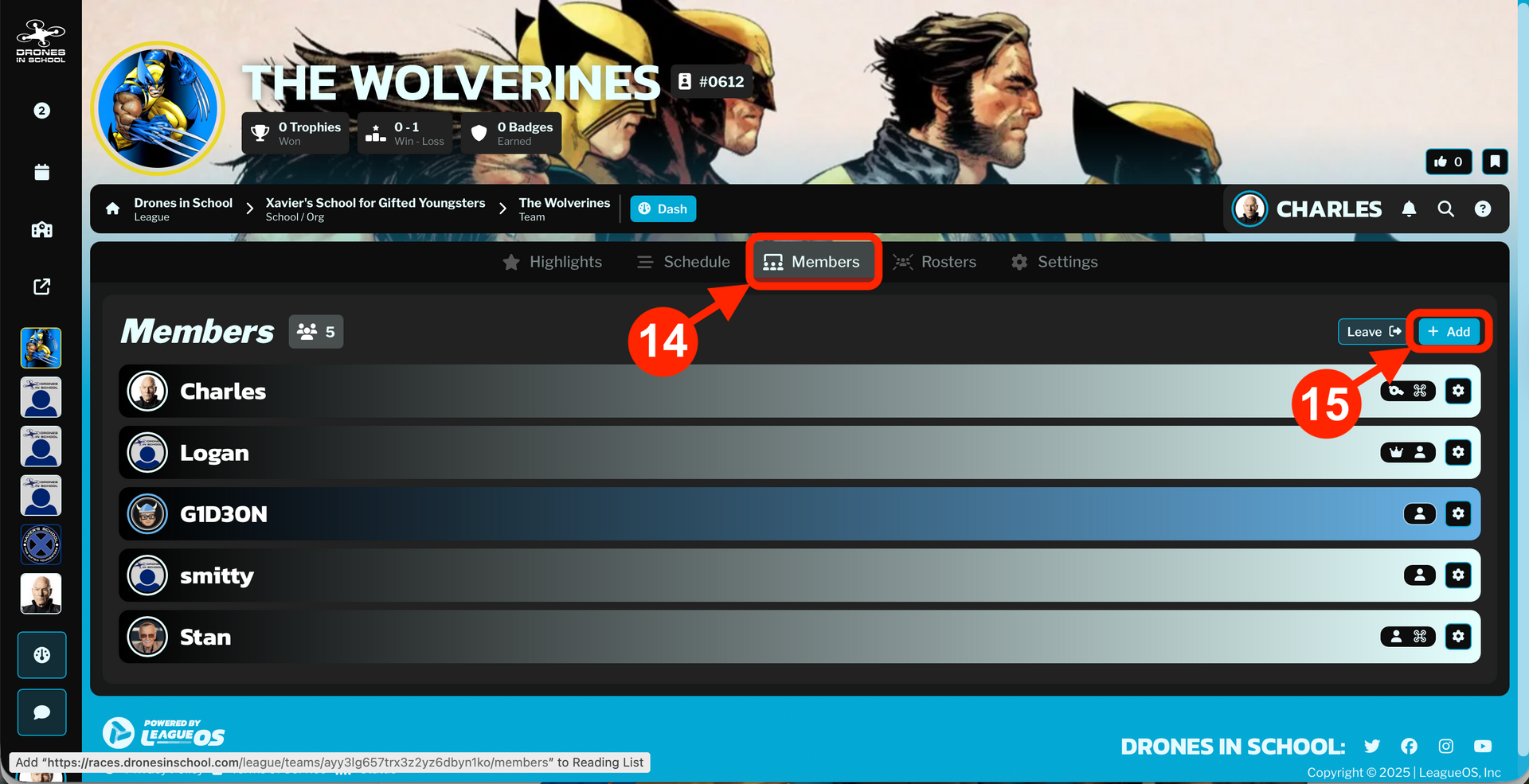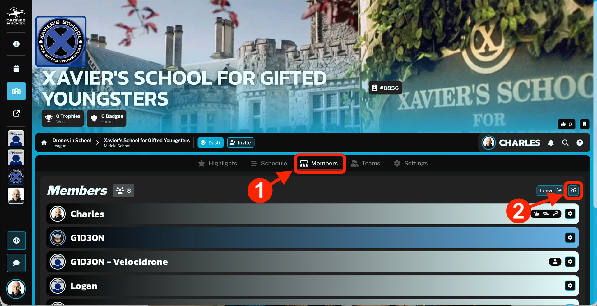 Go back to your School Page, select "Members".