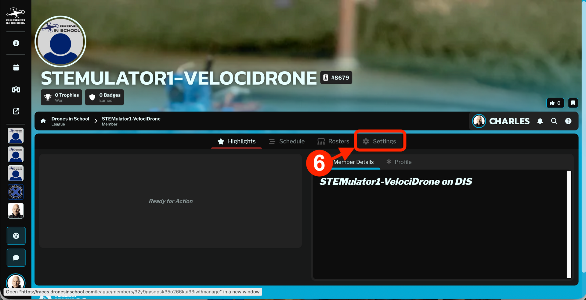 Log in to races.dronesinschool.com and navigate to your school page.